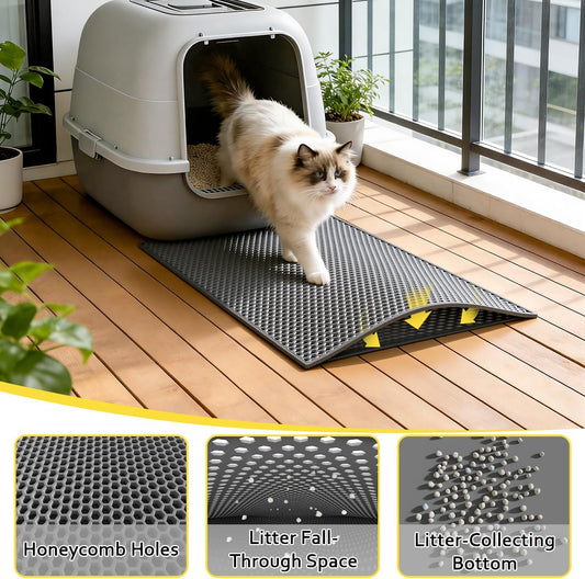 Cat Litter Mat, 15" x 24" Small Double-Layer Litter Trapping Mat, Waterproof and Urine-Proof, Easy to Clean, Scatter Control for Floors (Grey, 1 Pack)